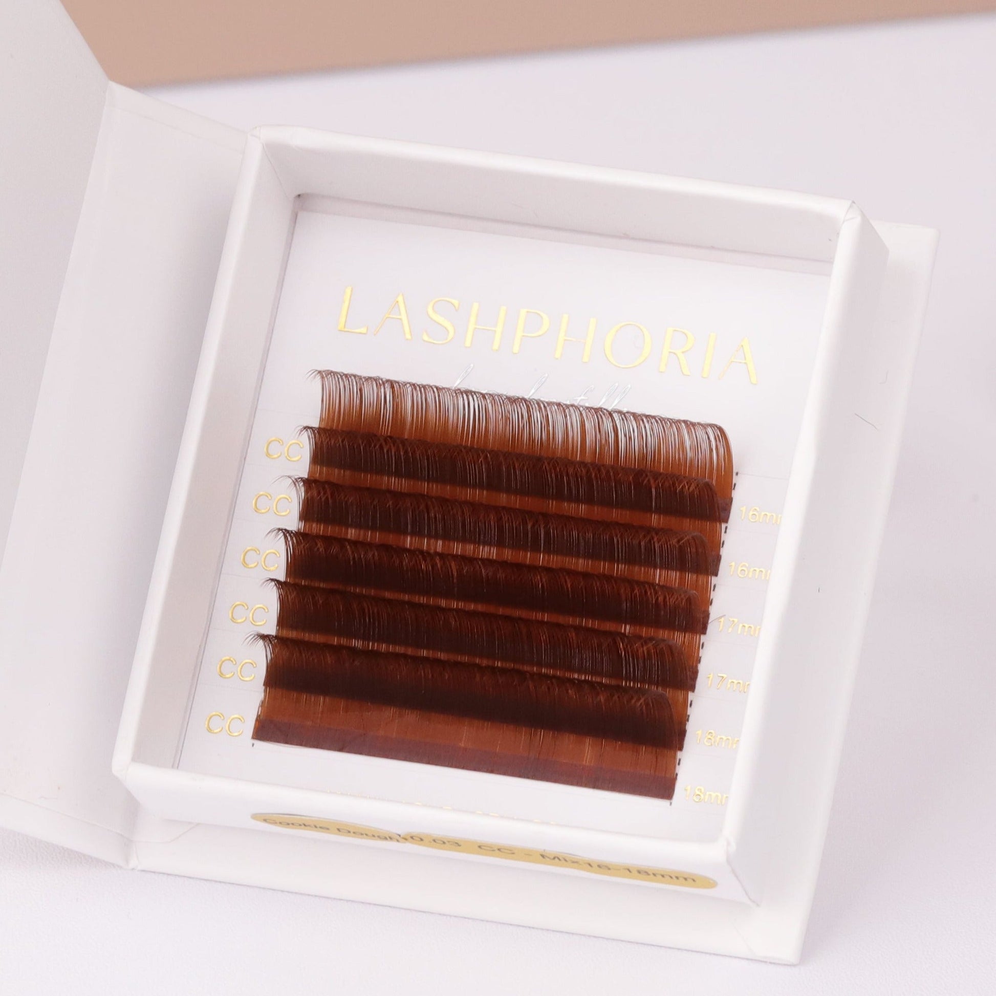 Our single length trays of Cookie Dough are currently an available in 0.05mm CC Curl. For more diameters, curls and lengths, please head back to our mixed length option.